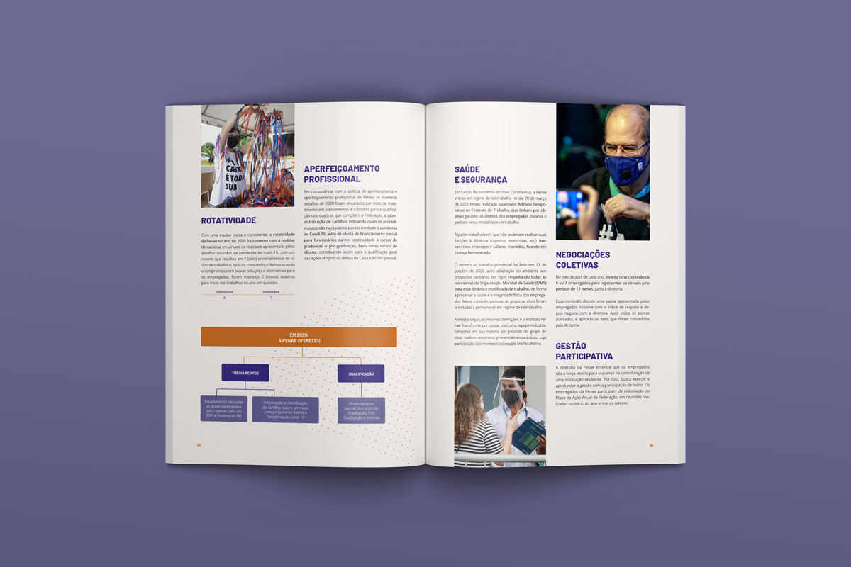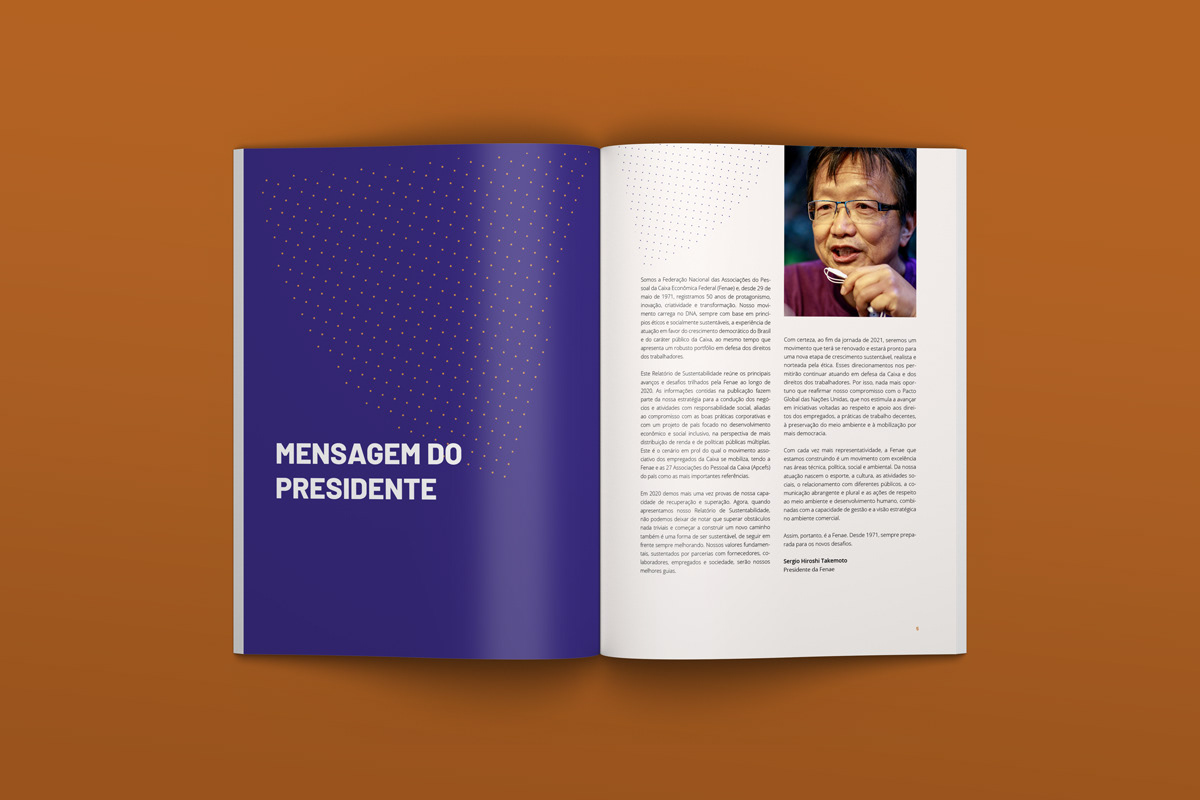 Projeto gráfico e diagramação do Relatório de Sustentabilidade da FENAE